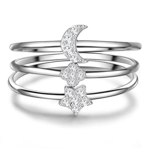 3er Set Ringe Sterling Silber Zirkonia weiß
