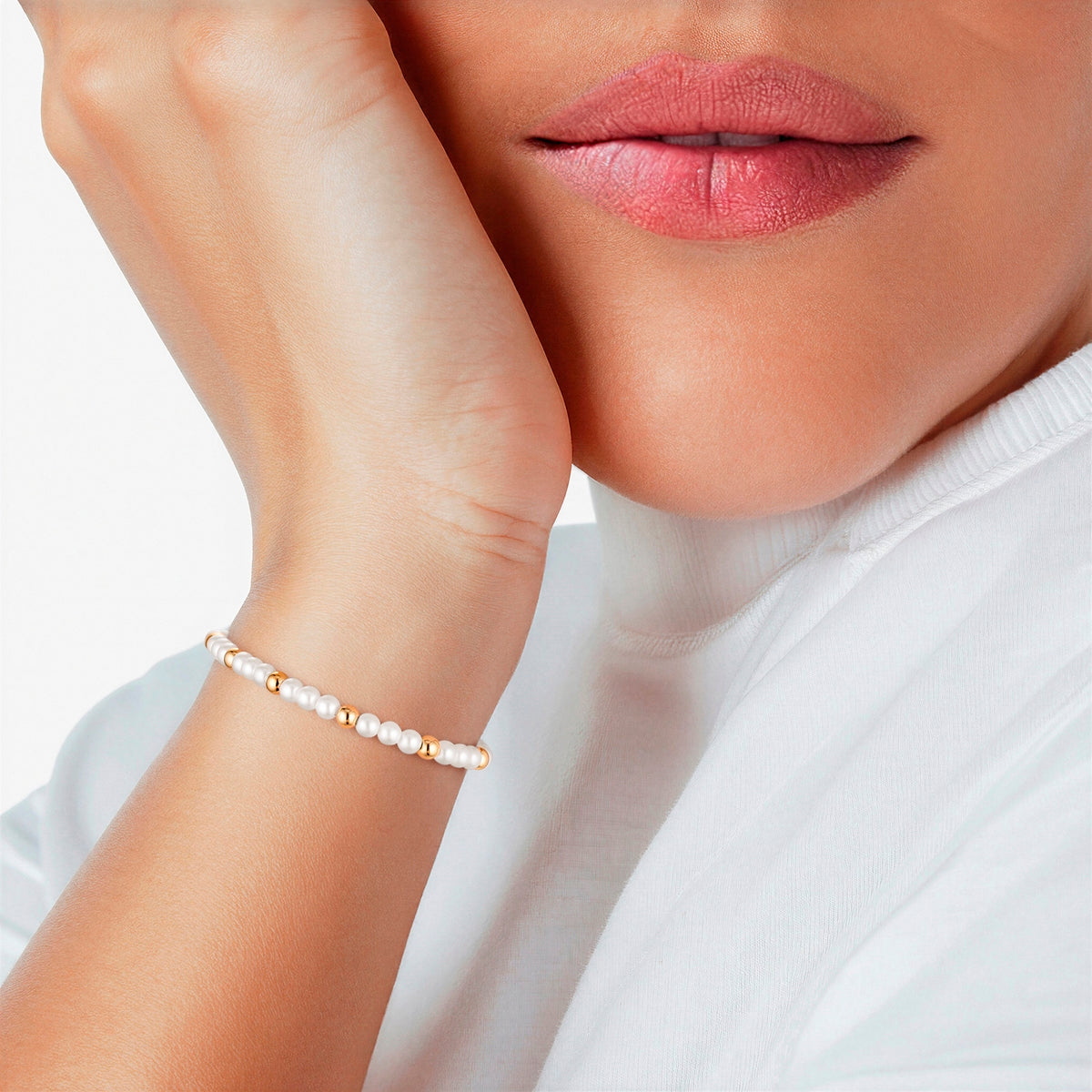 Armband gelbgold Perle (synth.) weiß