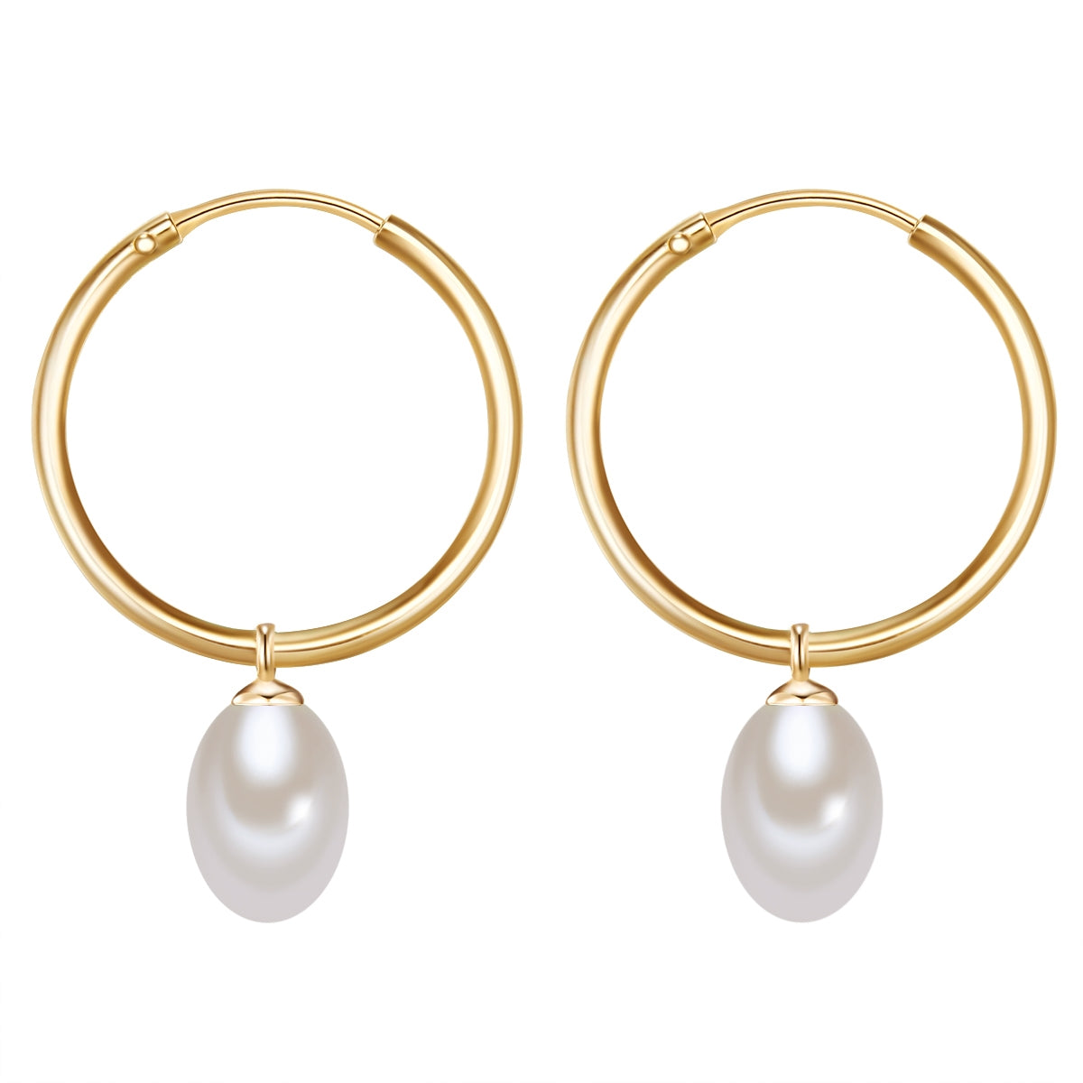 Creolen Sterling Silber gelbgold Süßwasser-Zuchtperle weiß