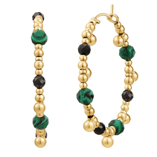 Creolen Edelstahl gelbgold Spinell schwarz Malachit grün