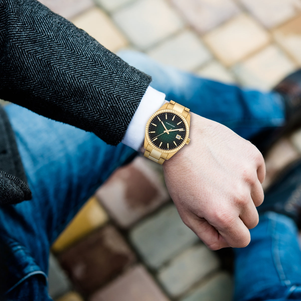 Herren Quarzuhr gelbgold Edelstahl gelbgold