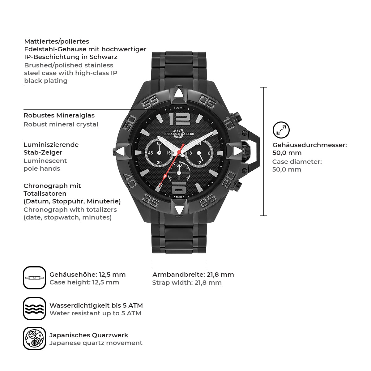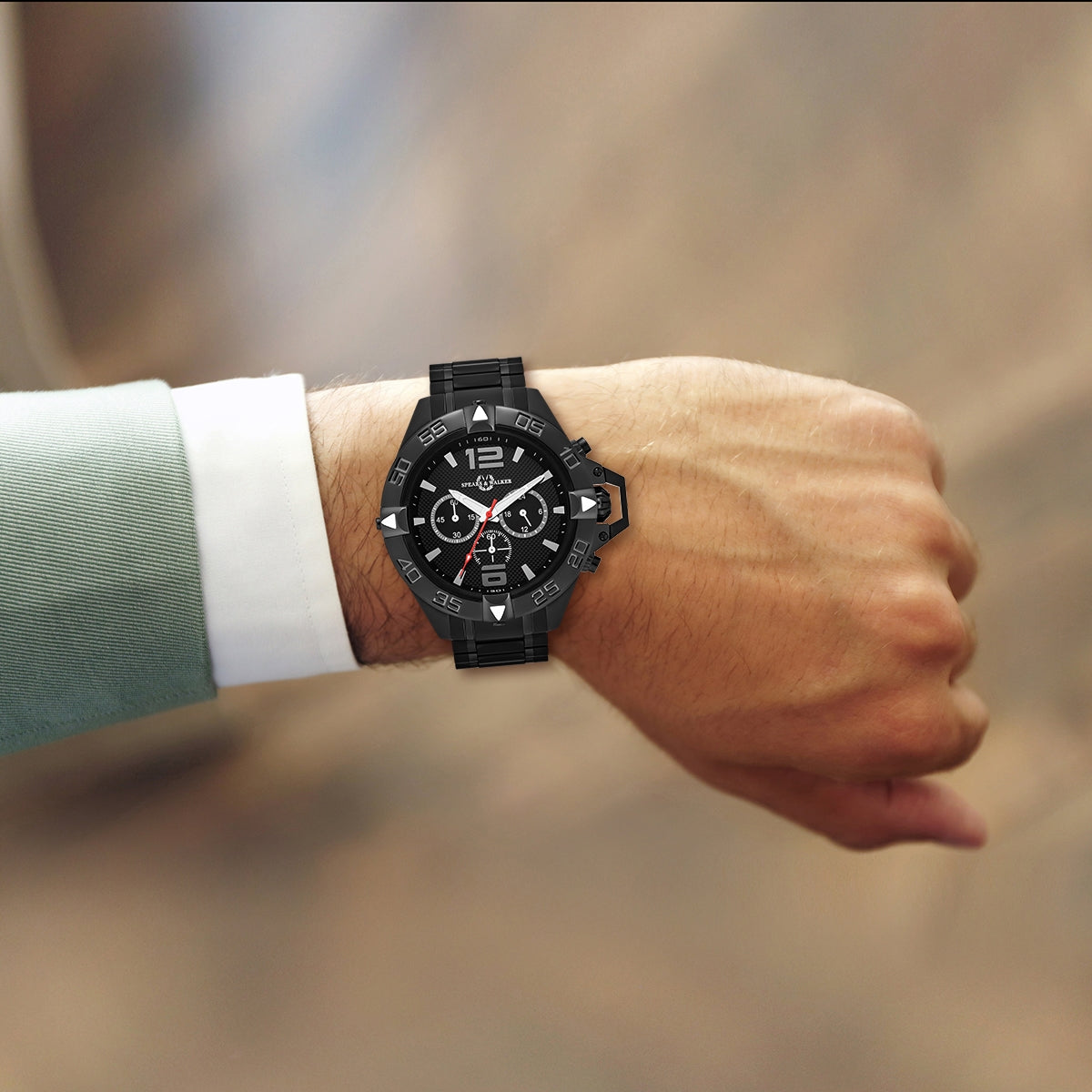 Herren Quarzuhr schwarz Edelstahl schwarz