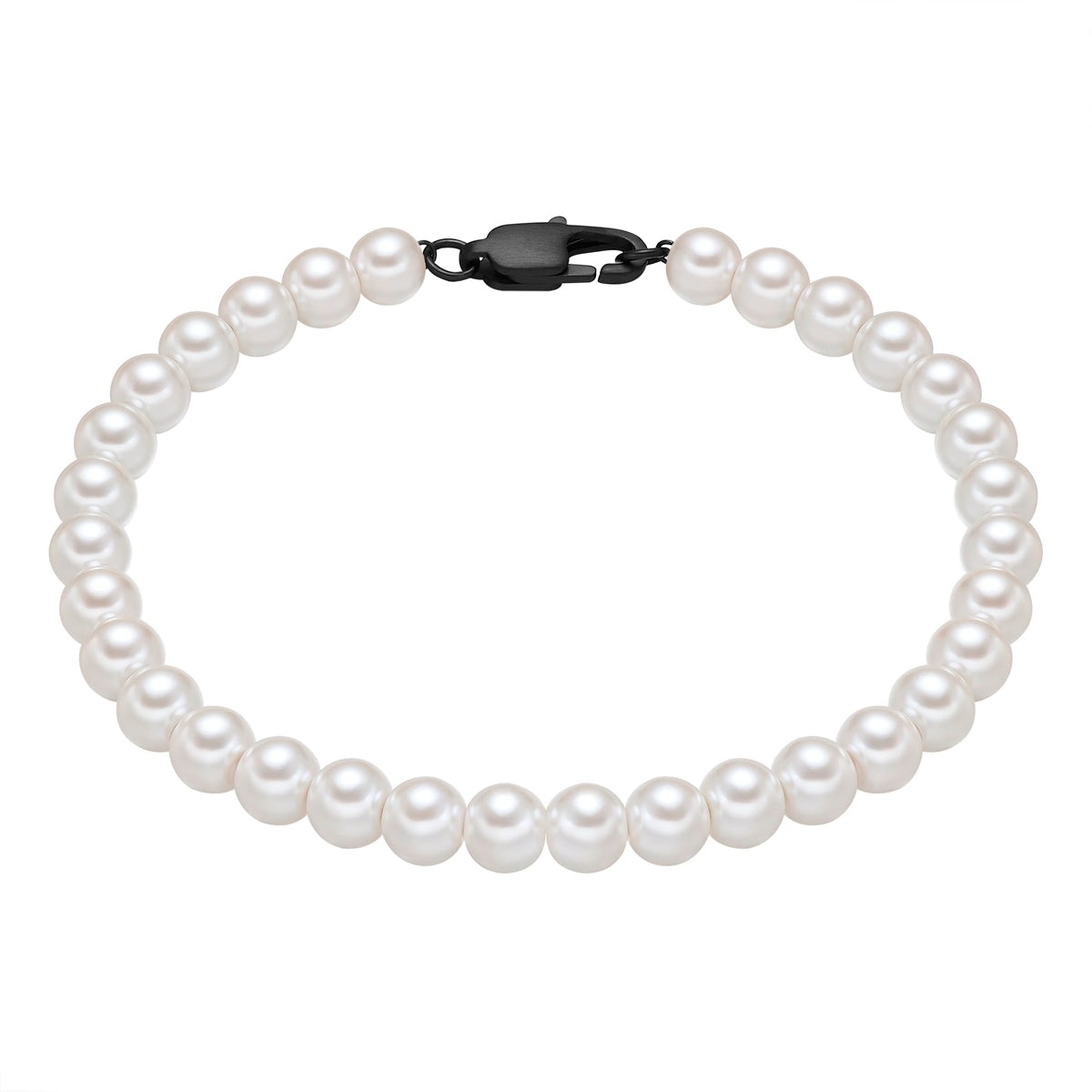 Armband Edelstahl schwarz Perle (synth.) weiß