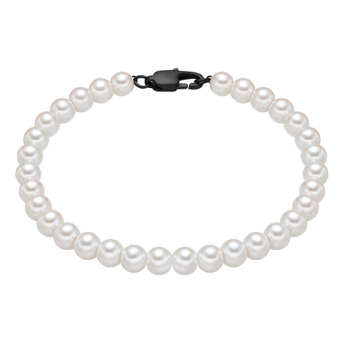 Armband Edelstahl schwarz Perle (synth.) weiß