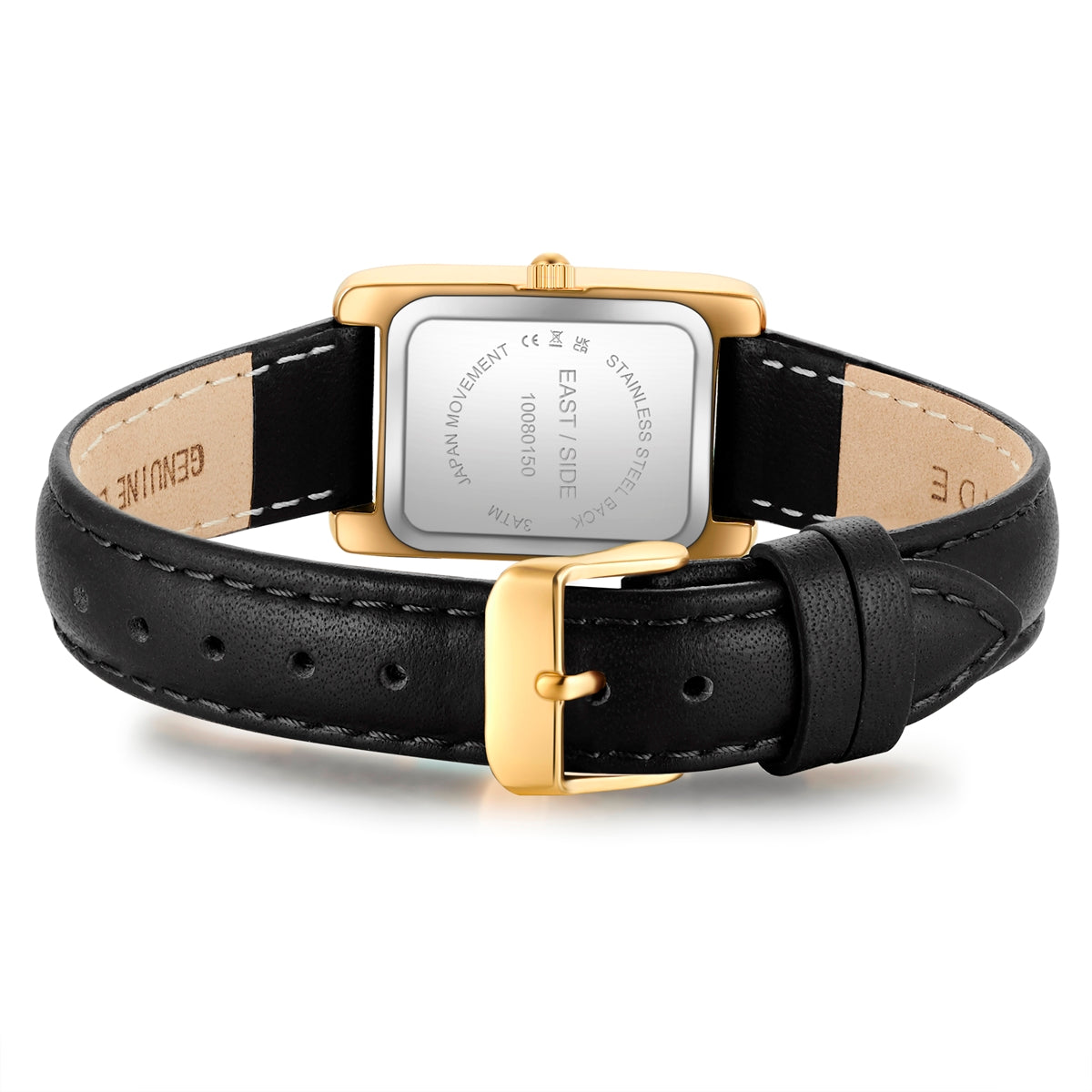 Damen Quarzuhr gelbgold Echtleder schwarz
