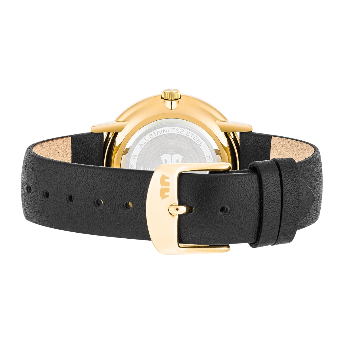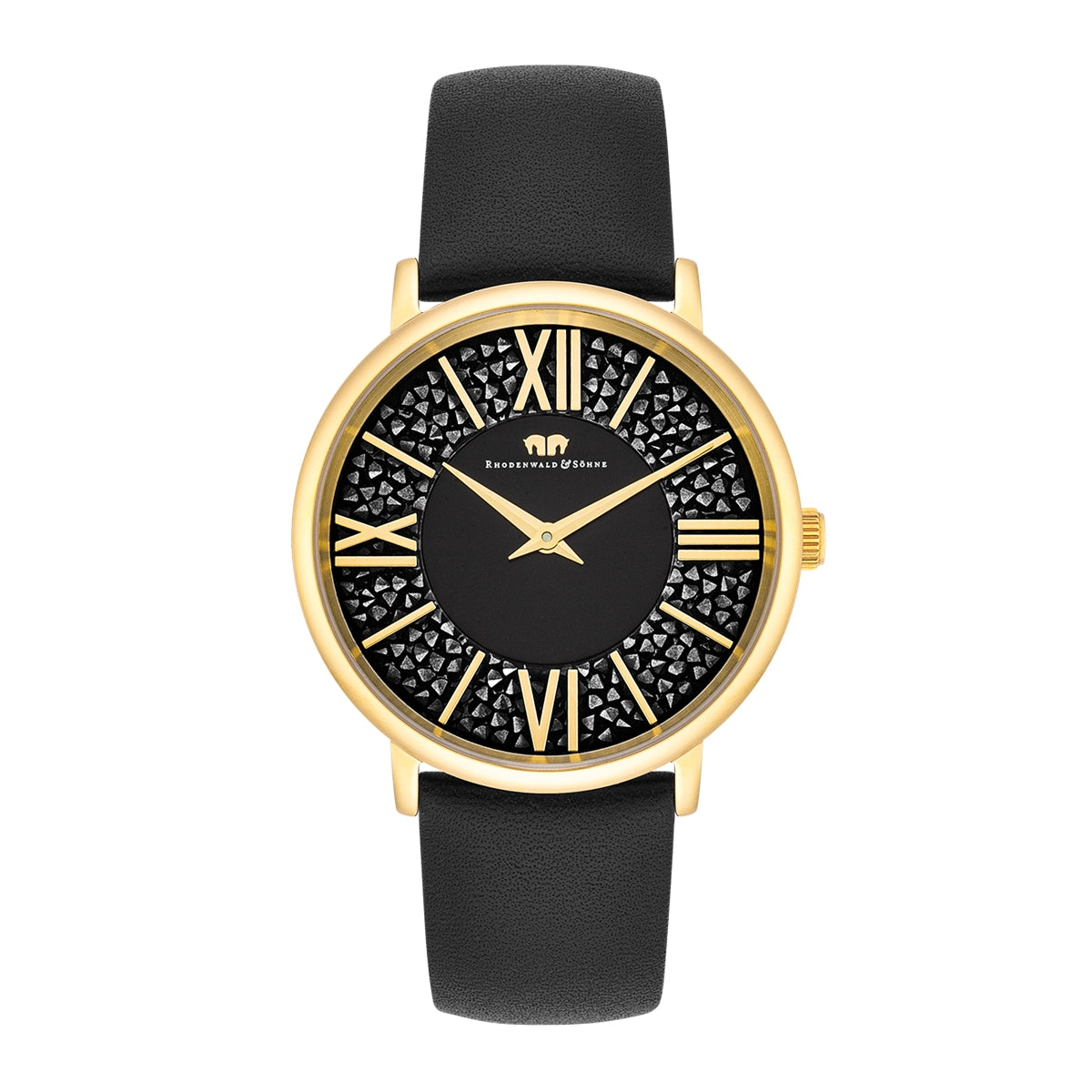 Damen Quarzuhr gelbgold Echtleder schwarz