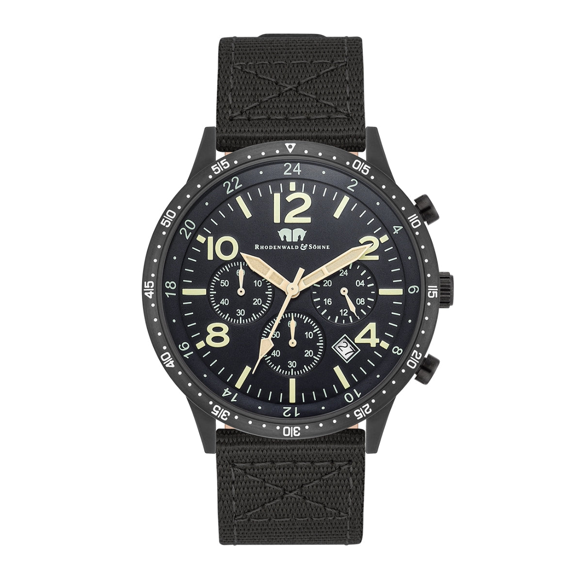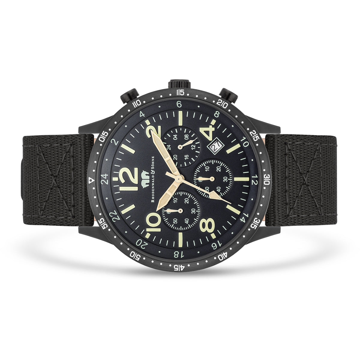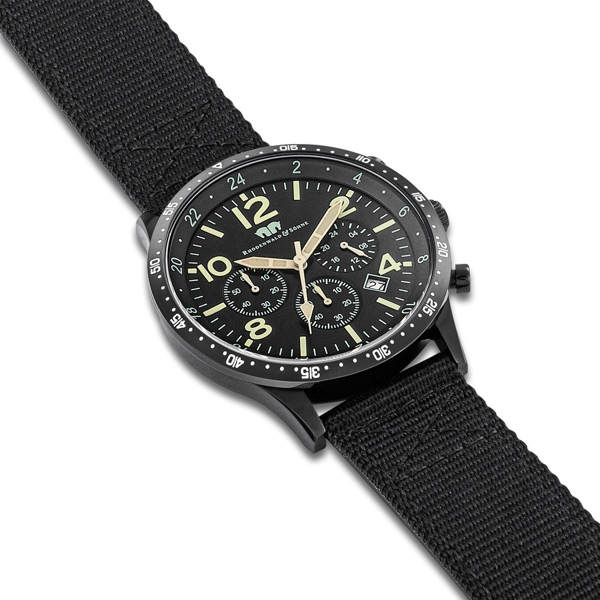 Herren Chronograph schwarz Nylon schwarz