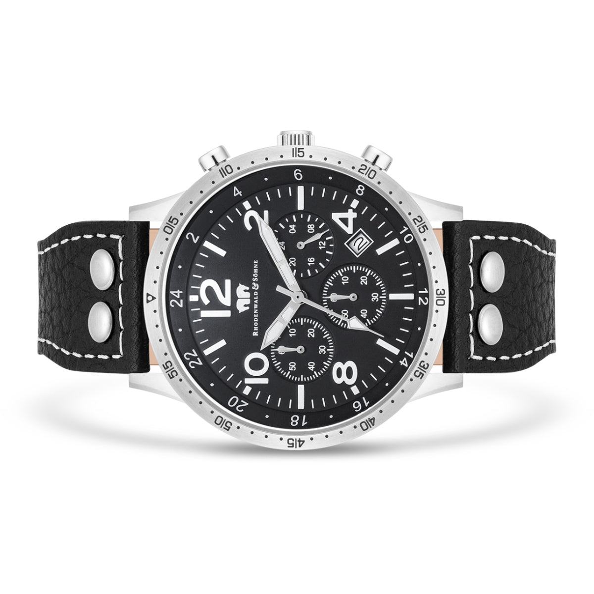 Herren Chronograph silber Echtleder schwarz