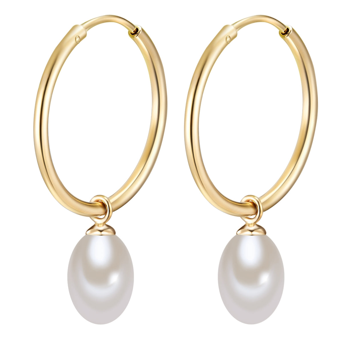 Creolen Sterling Silber gelbgold Süßwasser-Zuchtperle weiß