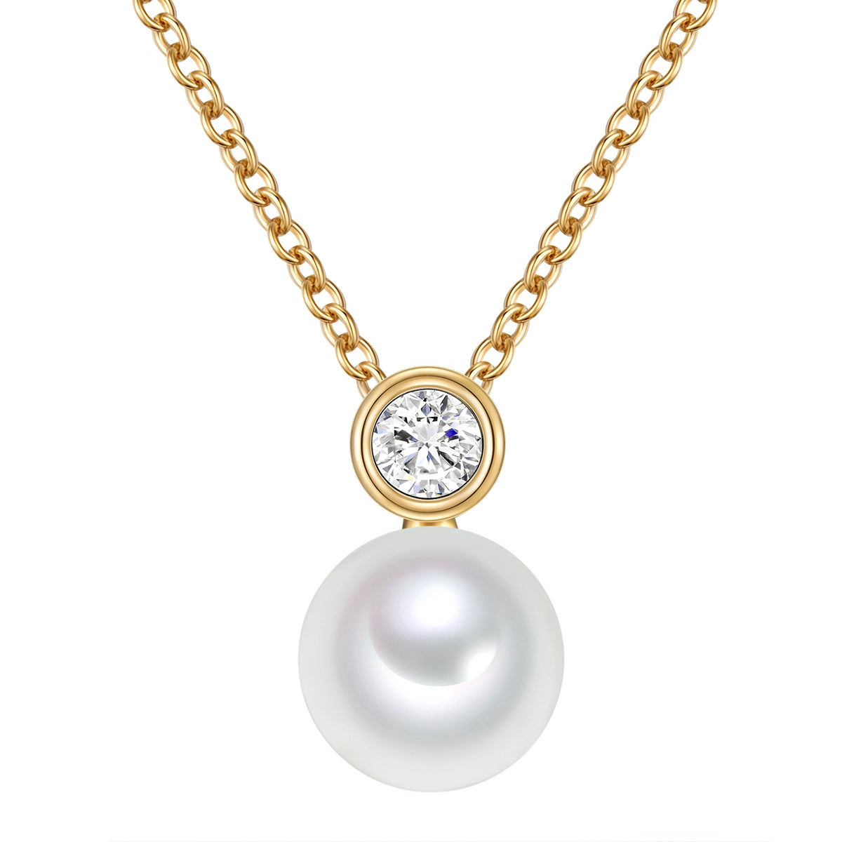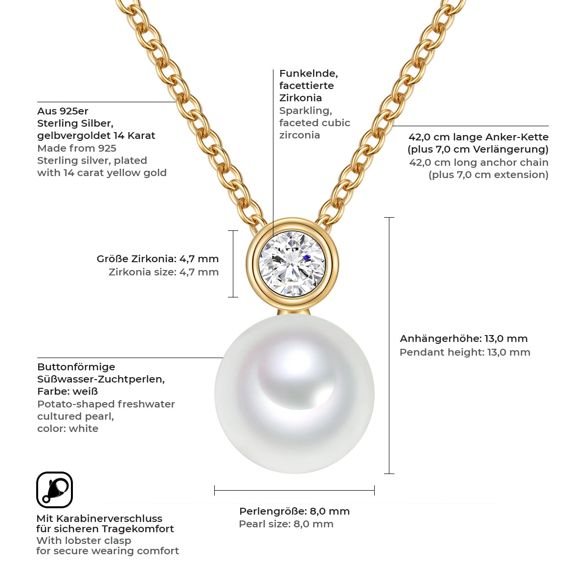 Kette mit Anhänger Sterling Silber gelbgold Süßwasser-Zuchtperle weiß Zirkonia weiß