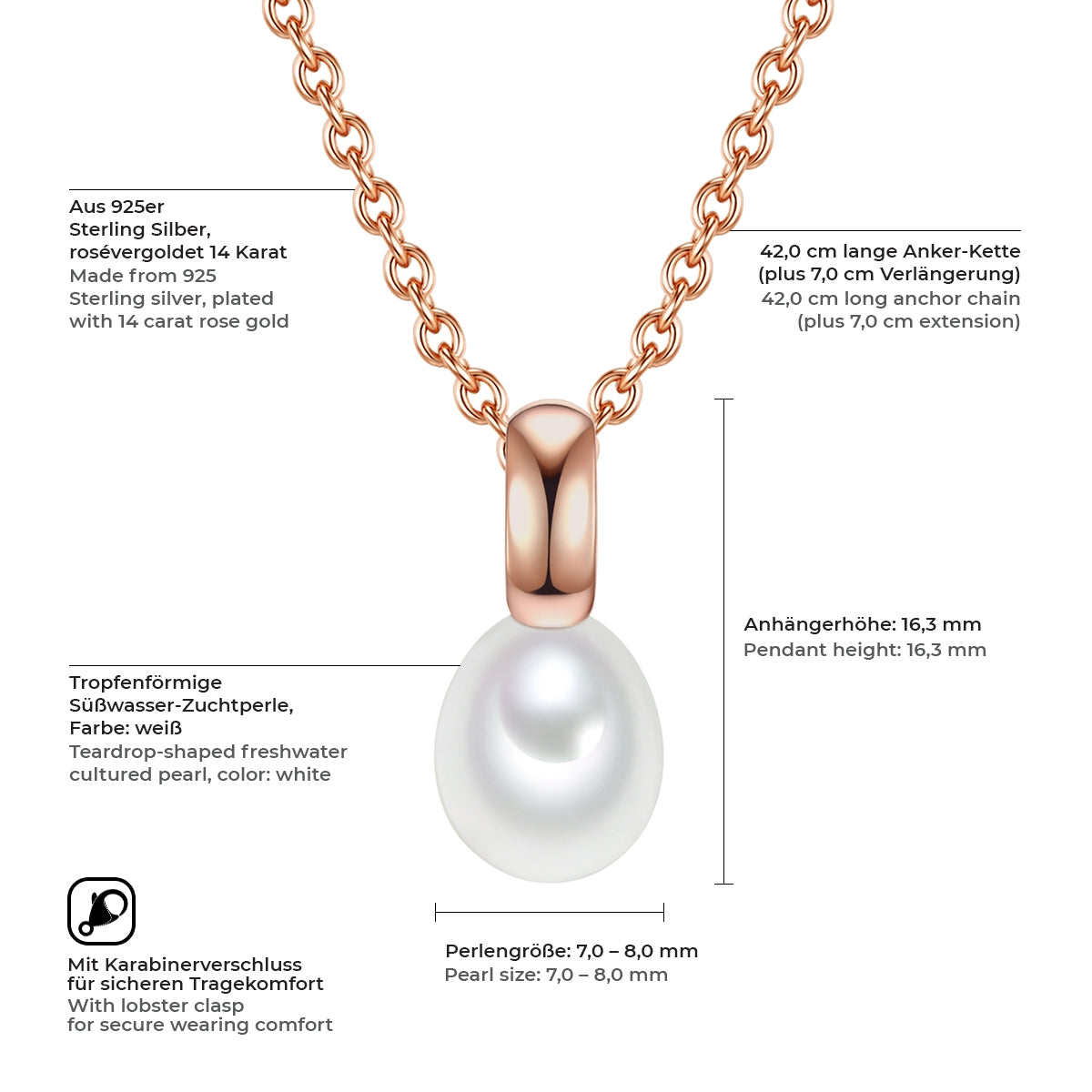 Kette mit Anhänger Sterling Silber roségold Süßwasser-Zuchtperle weiß