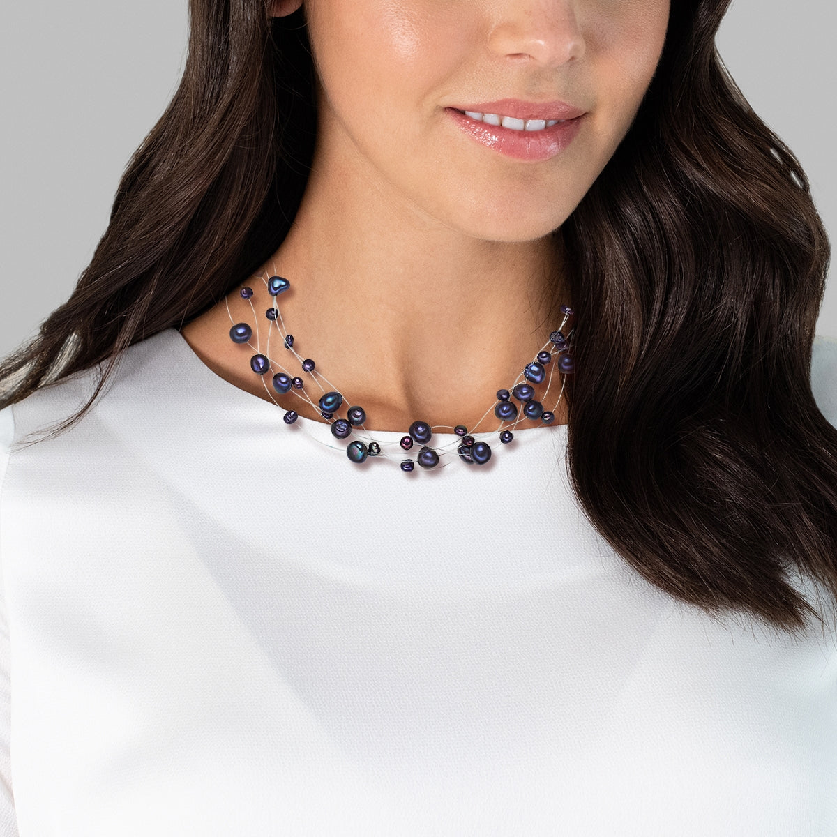 Kette Sterling Silber Süßwasser-Zuchtperle dunkelblau