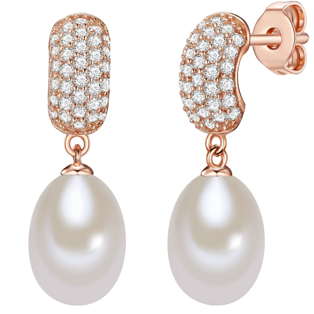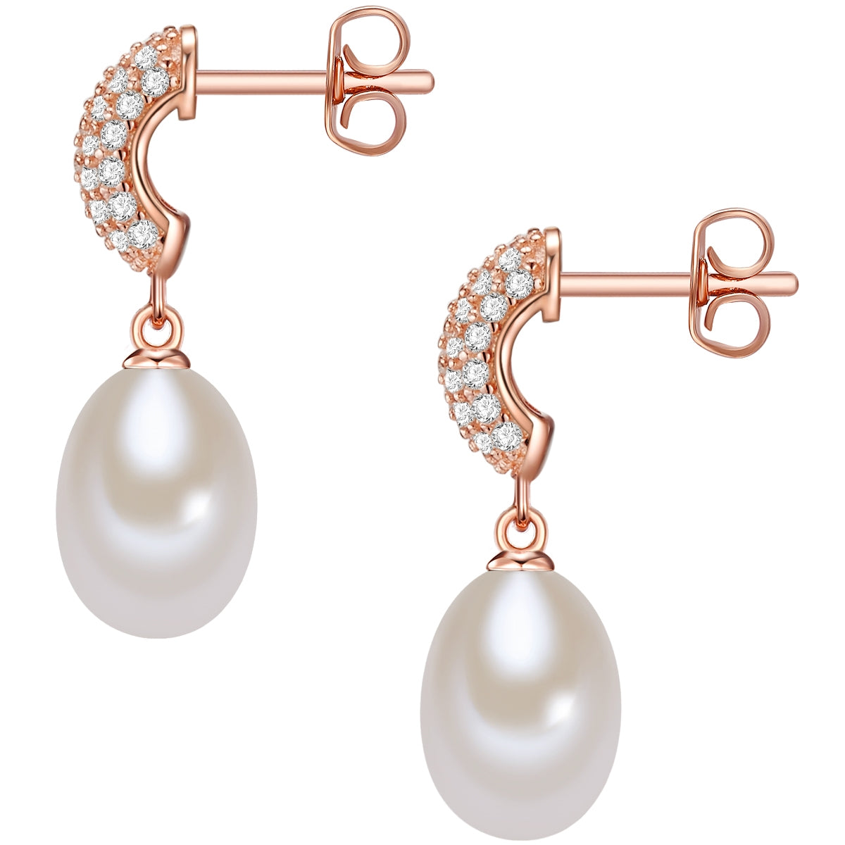 Ohrstecker Sterling Silber roségold Süßwasser-Zuchtperle weiß Zirkonia weiß