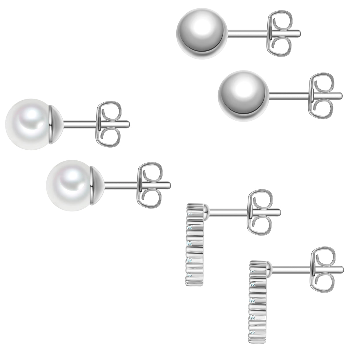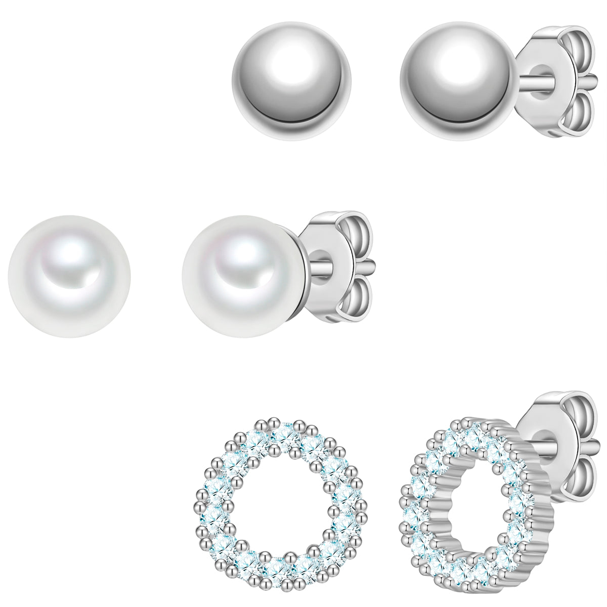 3er Set Ohrstecker Zirkonia weiß Perle (synth.) weiß