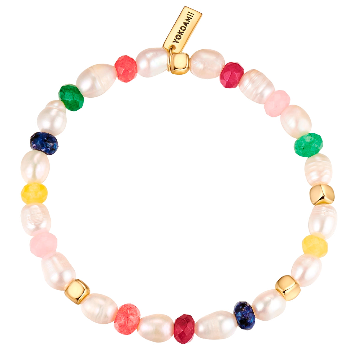 Armband gelbgold Süßwasser-Zuchtperle weiß Marmor multicolor