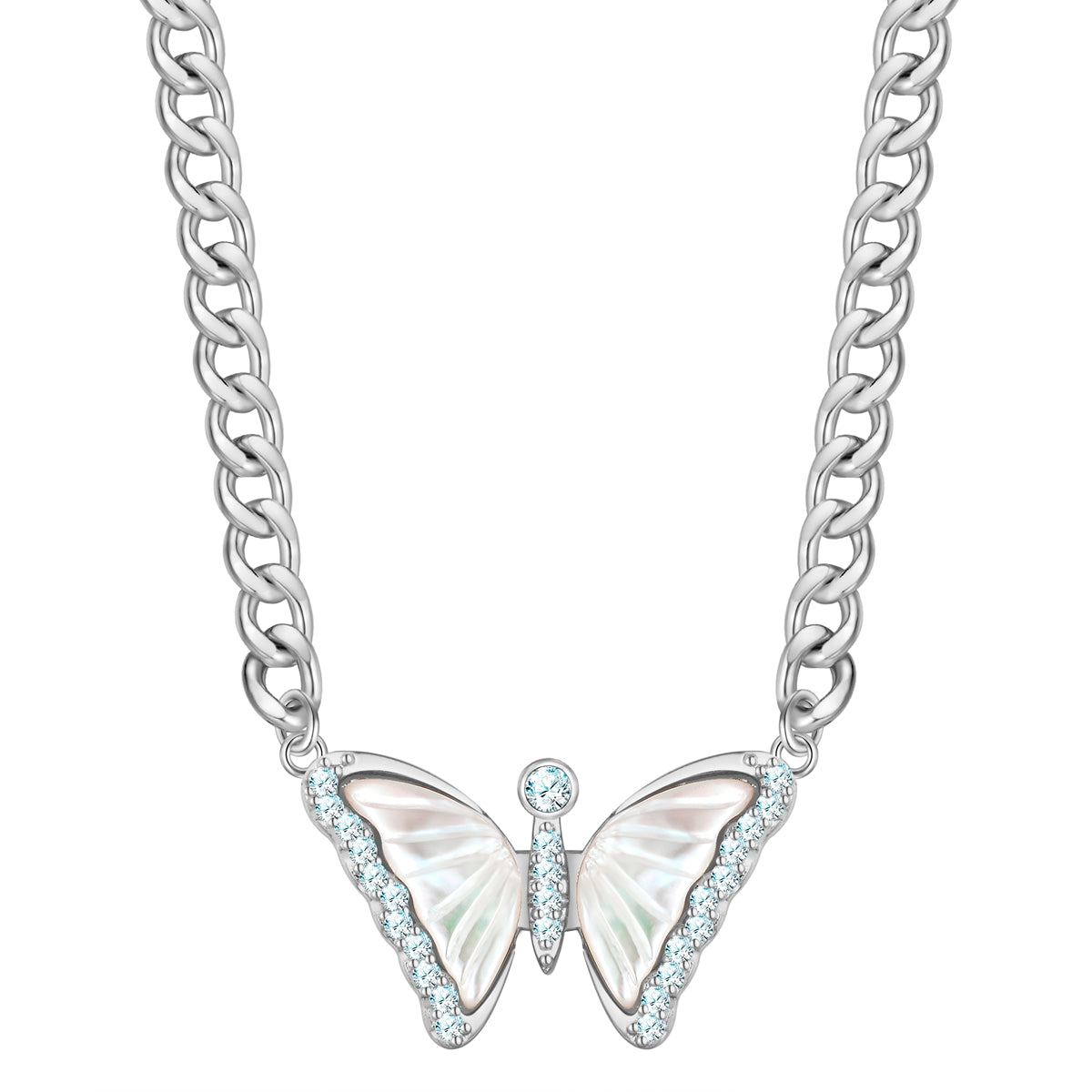 Kette mit Anhänger Perlmutt weiß Zirkonia weiß