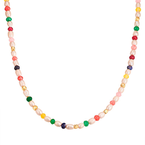 Kette gelbgold Süßwasser-Zuchtperle weiß Marmor multicolor