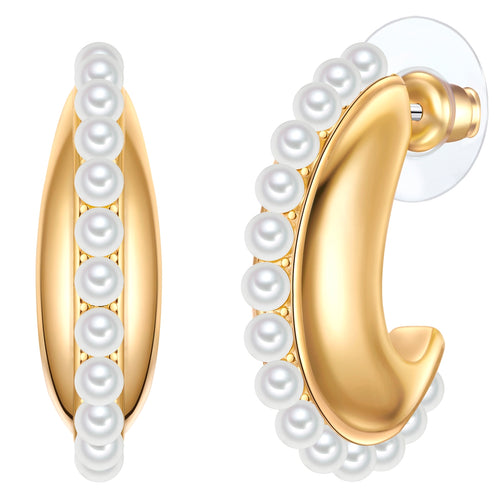 Creolen gelbgold Perle (synth.) weiß Zirkonia weiß