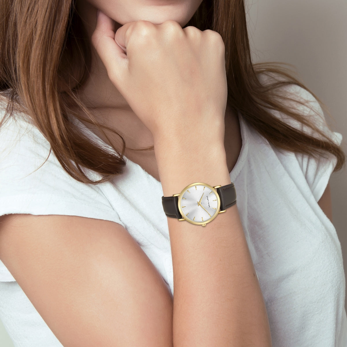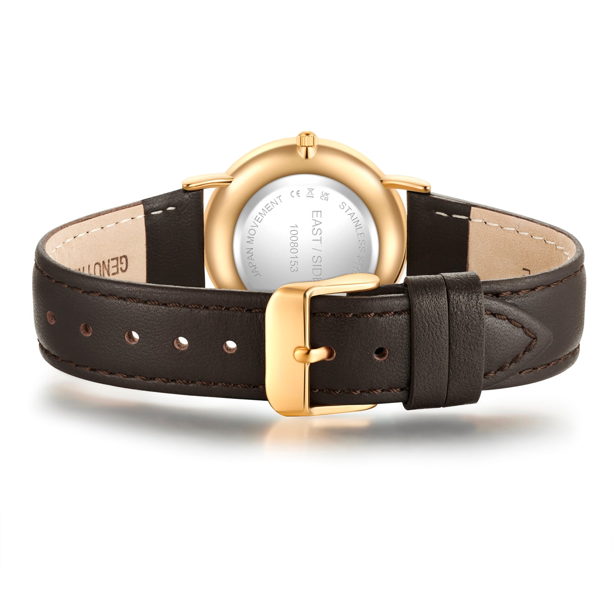 Damen Quarzuhr gelbgold Echtleder dunkelbraun