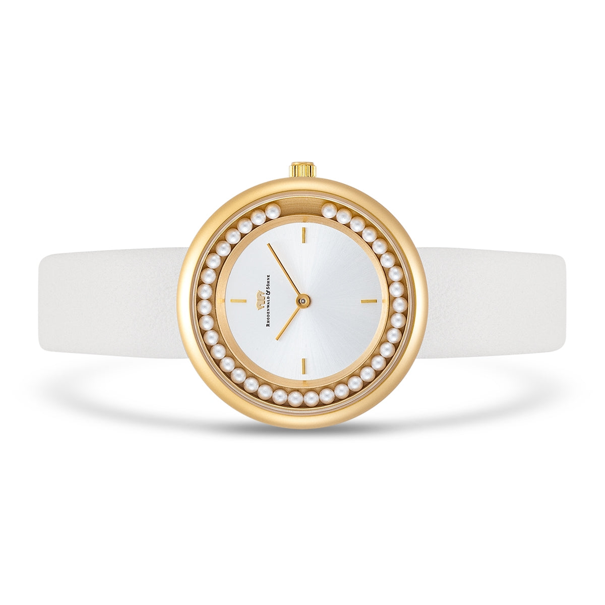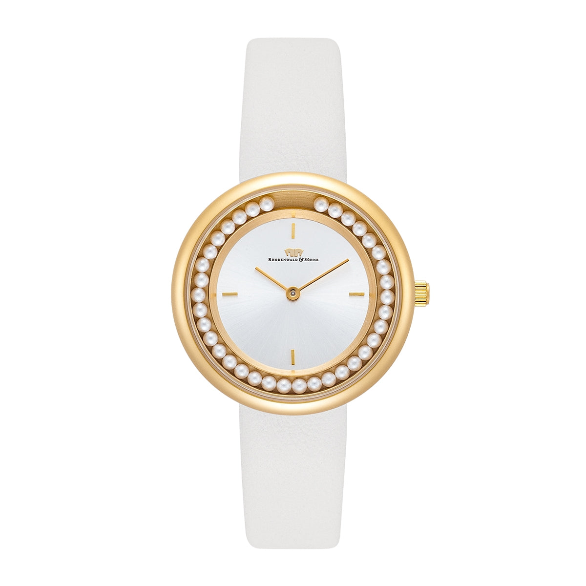 Damen Quarzuhr gelbgold Echtleder weiß