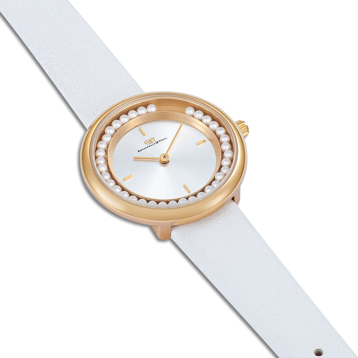 FLEXIBEL: Das glatte, weiße Echtlederarmband wird mit einer Dornschließe angepasst (Armbandlänge 19 cm)