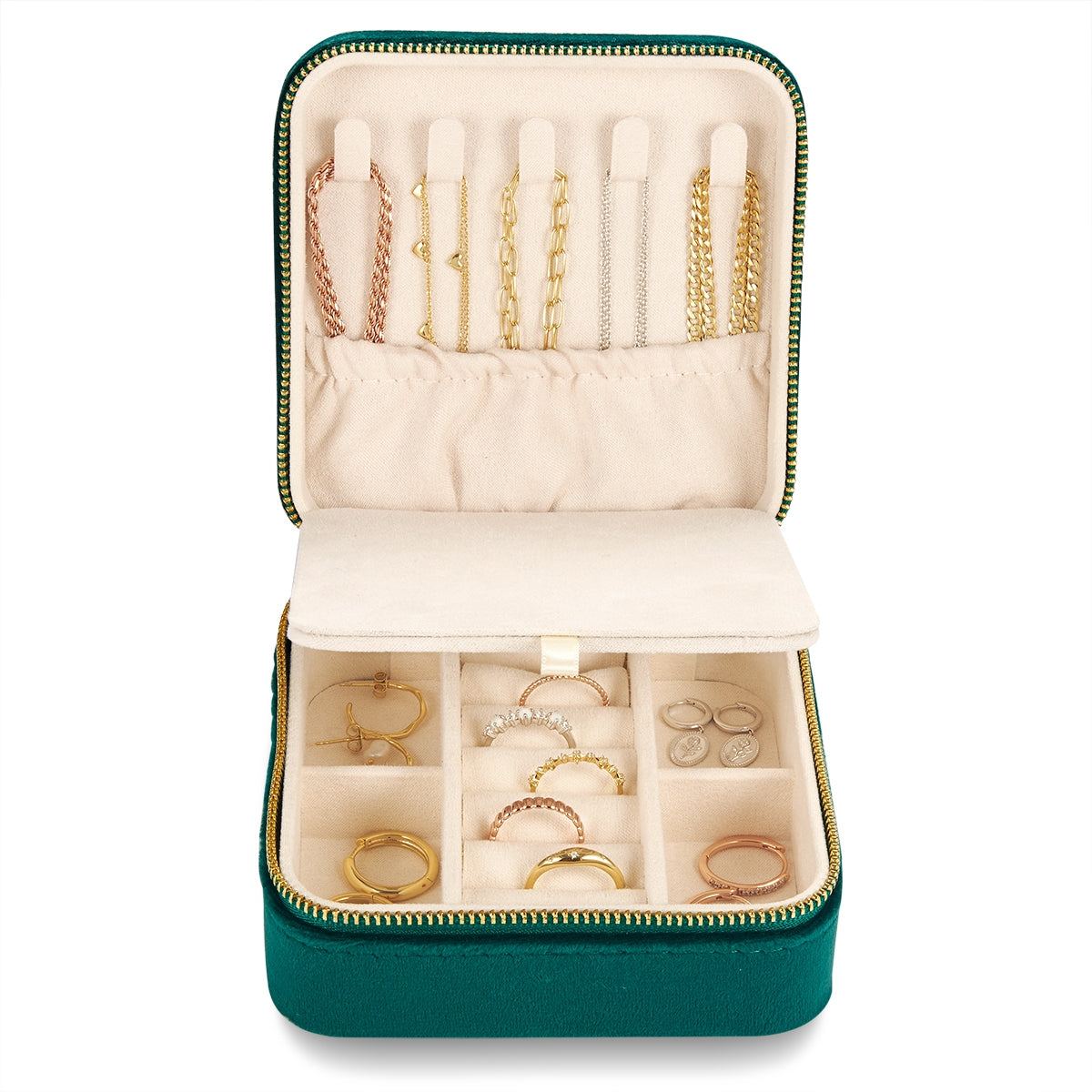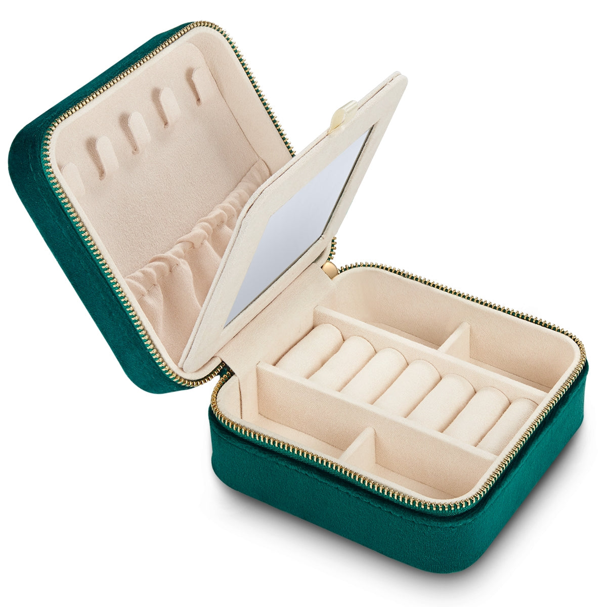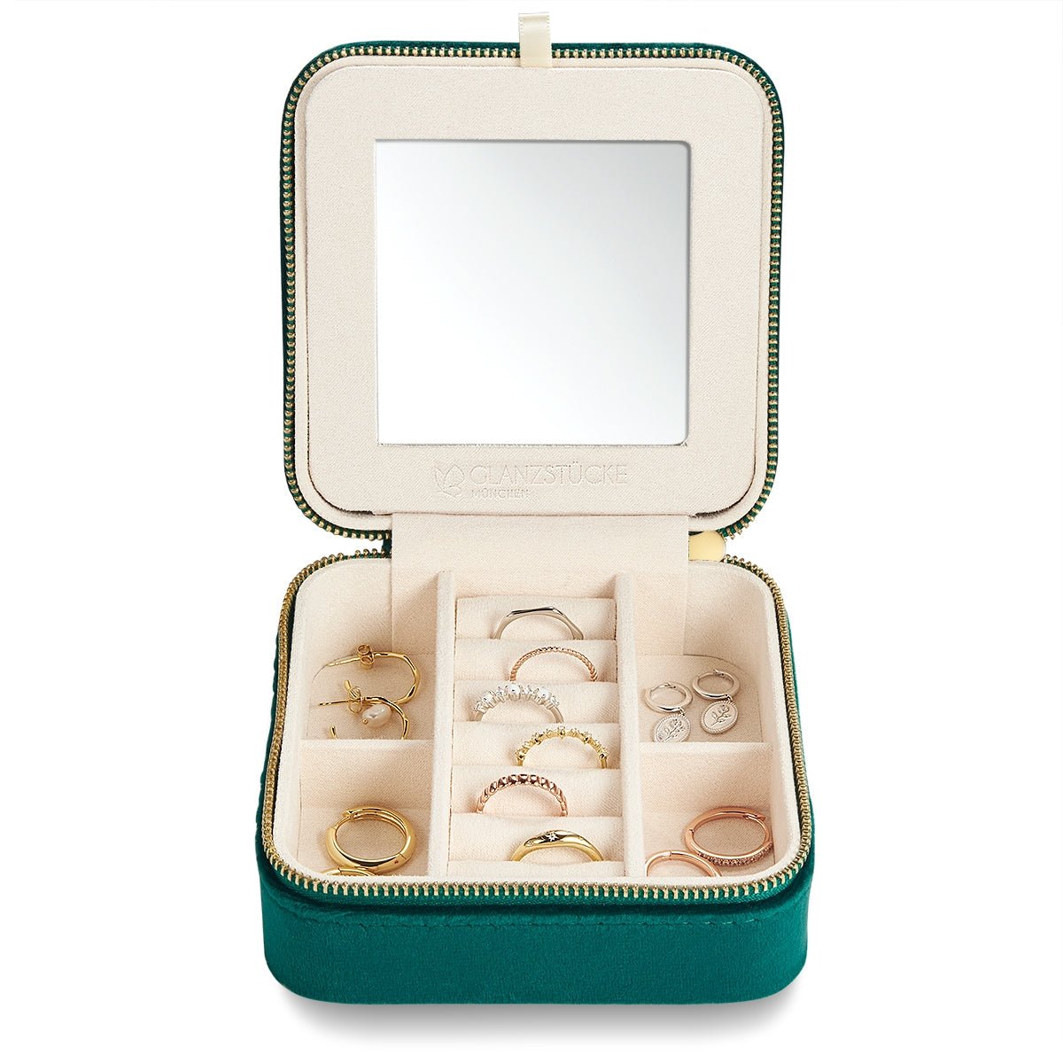 Schmuck-Reisetäschchen Samt grün 115x115x60 mm