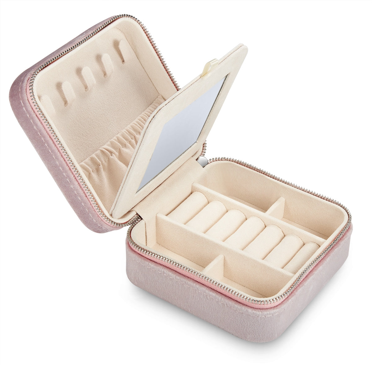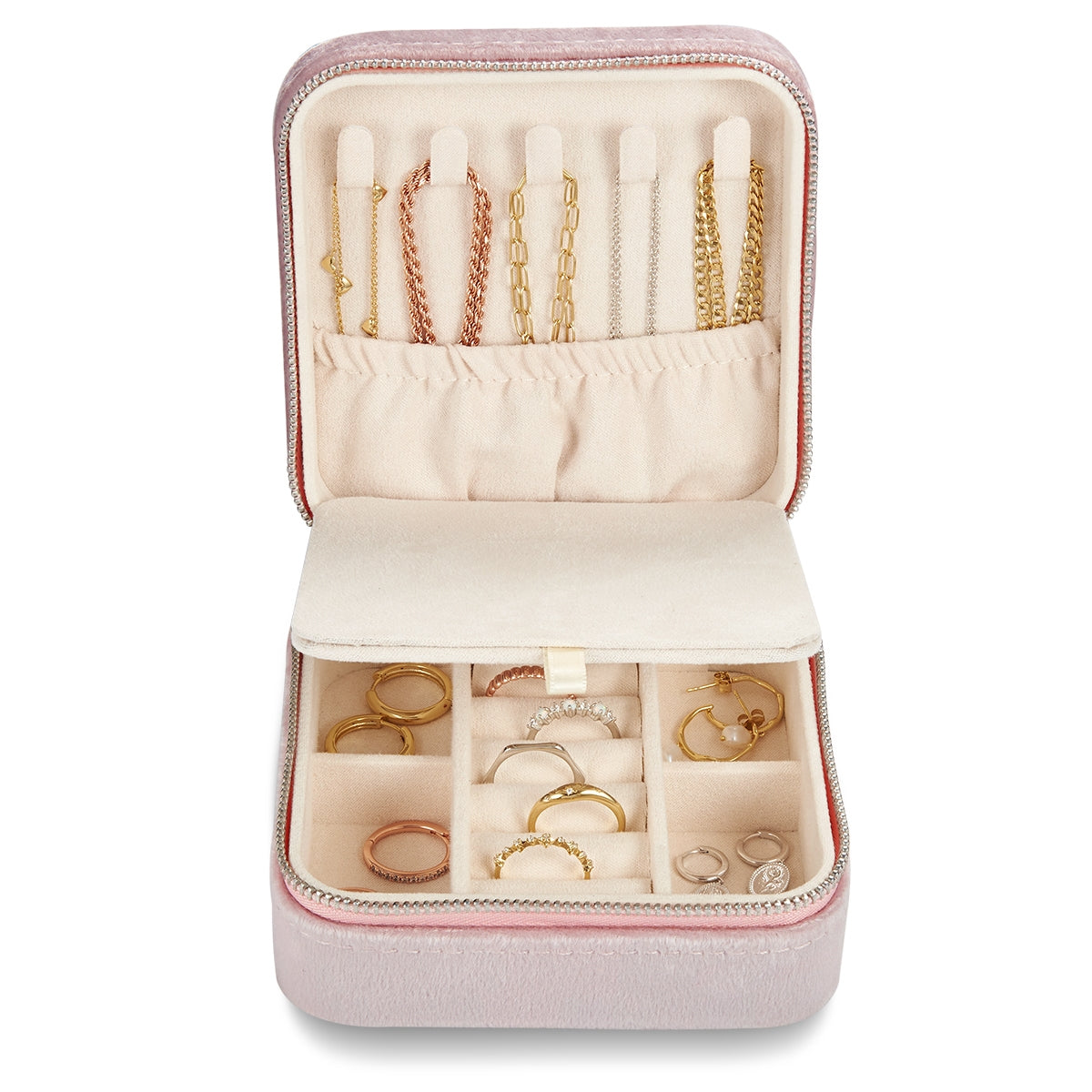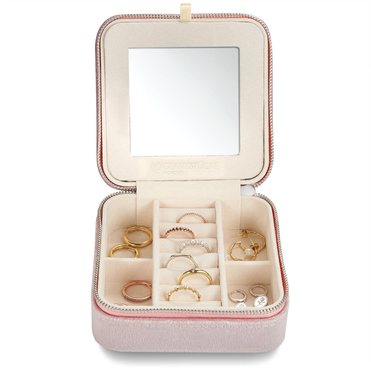 Schmuck-Reisetäschchen Samt rosa 115x115x60 mm
