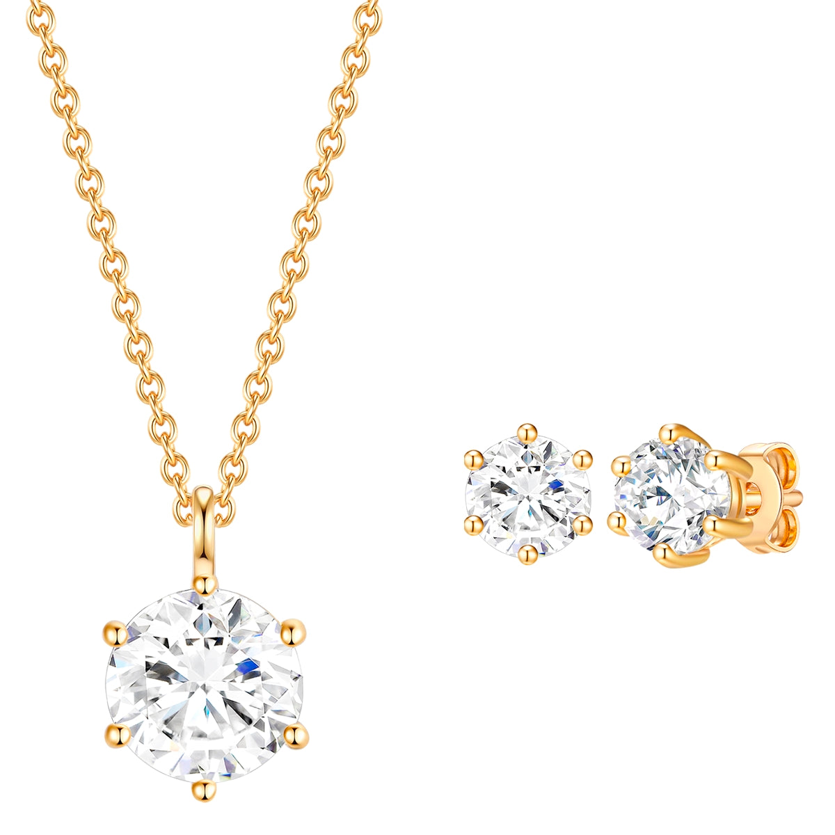 Set (Kette+Ohrstecker) Sterling Silber gelbgold verziert mit Kristallen von Swarovski® weiß