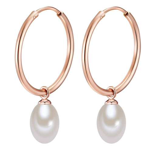 Creolen Sterling Silber roségold Süßwasser-Zuchtperle weiß
