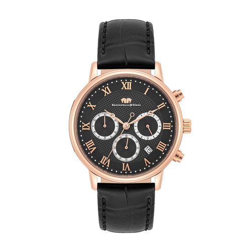 Herren Chronograph roségold Echtleder schwarz